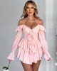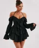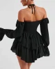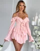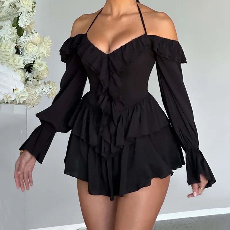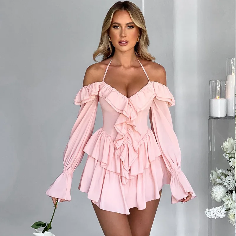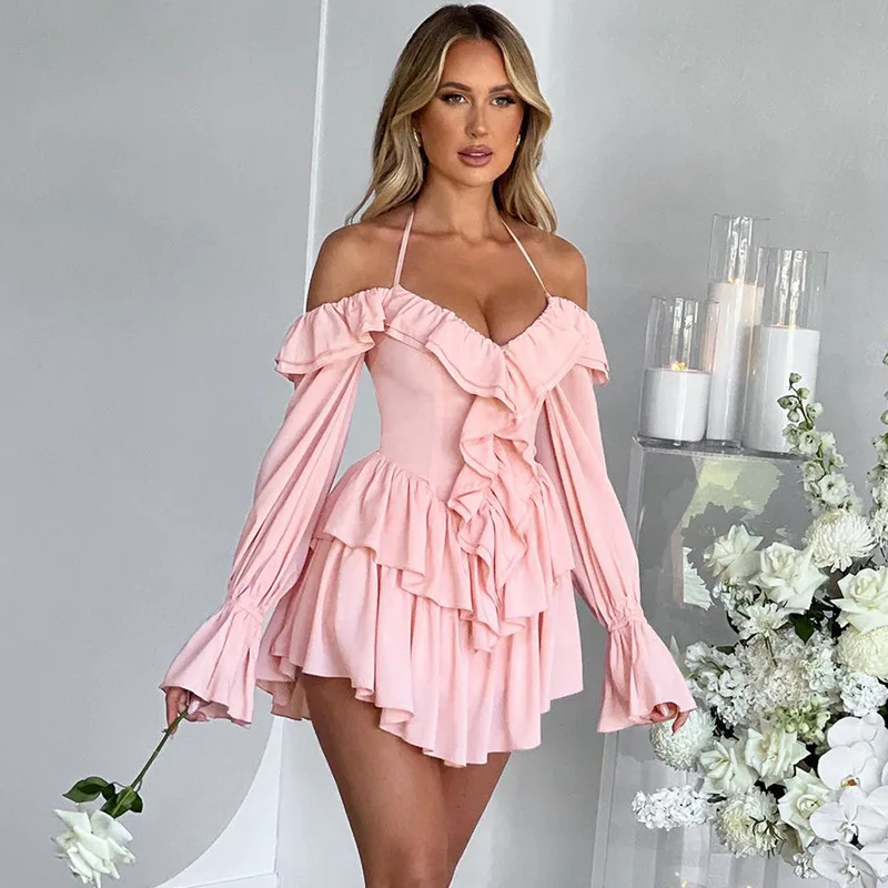 Women Summer Solid Pure Color Halter Ruffle Flare Sleeves Tiered Dress Sexy Elegant Birthday Party Clubwear Women Mini Dress